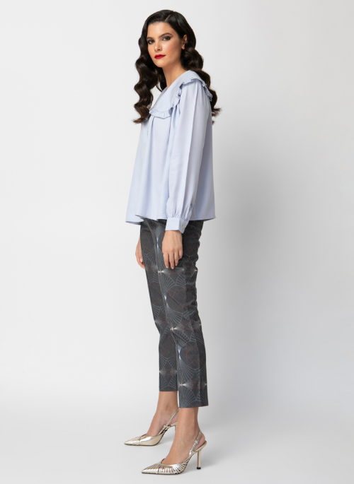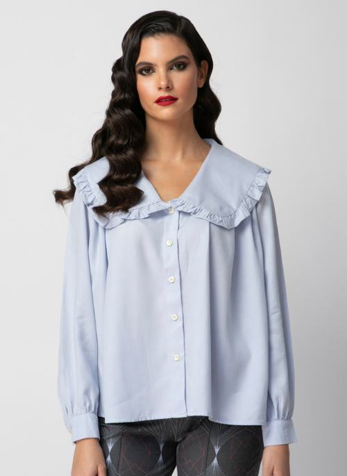 "Eva" shirt won't ever disappoint you, girls! A wear-anywhere icon, it has 3/4 sleeves that billow and blow in the wind and a dramatic ruffle-trimmed collar. It's cut from a premium twill, made of 100% certified Lenzing Tencel yarn in a really flattering loose fit. It features buttons down the front and in the cuffs. Match it with our A-line skirt for an easy outfit win.
