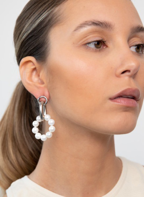The new silver version of our “Evi pearl earrings”. This version is a perfect blend of timeless pearls. The ‘Evi pearl earrings’ have a strong silhouette that gives any look softness with the classically redefined pearls.