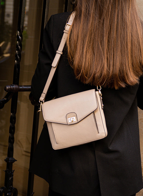 - Women's medium square crossbody bag with elegant and functional external pocket details