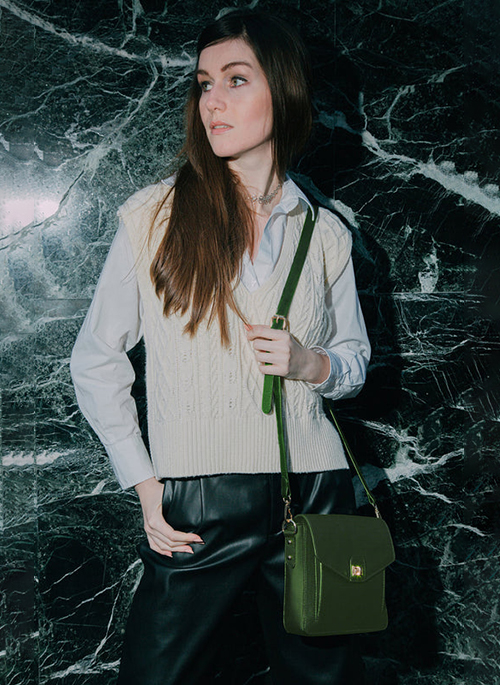 - Women's medium square crossbody bag with elegant and functional external pocket details