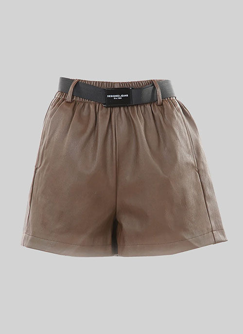 Details: Faux leather shorts with belt Regular fit Imported 65% COTTON 35% POLYESTER