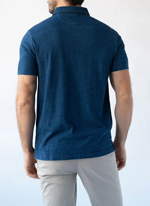 This relaxed fit polo is constructed from soft, natural indigo jersey that will wash down nicely over time and become as much of a favorite as your go-to jeans.