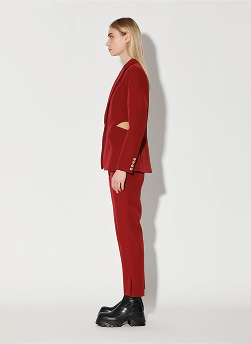 The Felicia Blazer brings sexy back with cut out details and low single button closure. Pair back to the Fallon Pant for the ultimate suit chic look.
