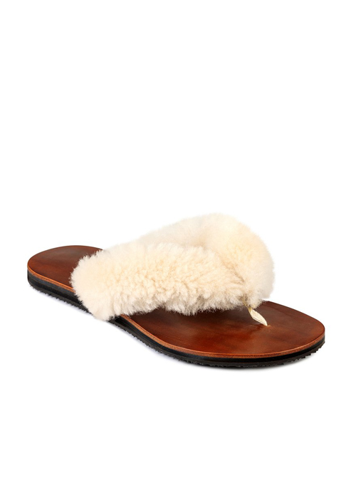 Our 'Felicity' is a genuine shearling thong slipper on our hand-stained leather footbed with a soft foam midsole and indoor-outdoor traction rubber outsole.