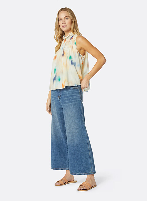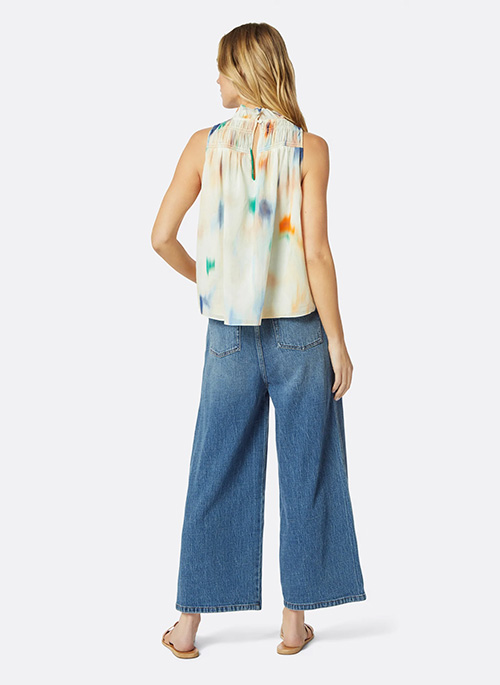 Crafted in a swing silhouette of blurred floral on cotton crepe, the yoked neckline of this easy top makes it a show stealer.