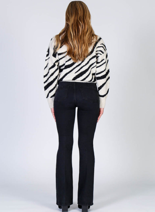 Pull-on flare jeans that are slim and accentuate your curves.