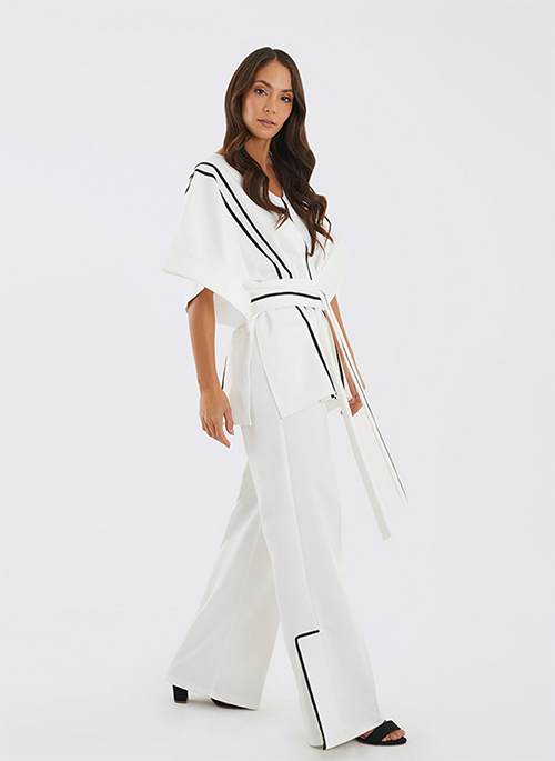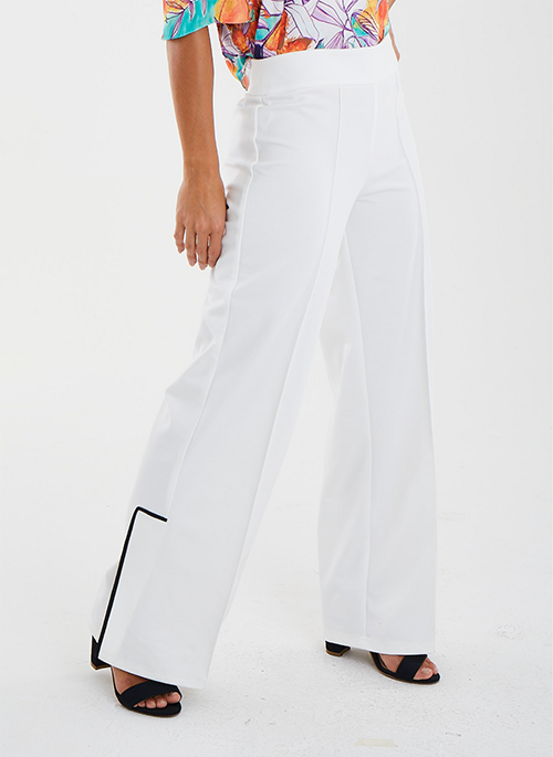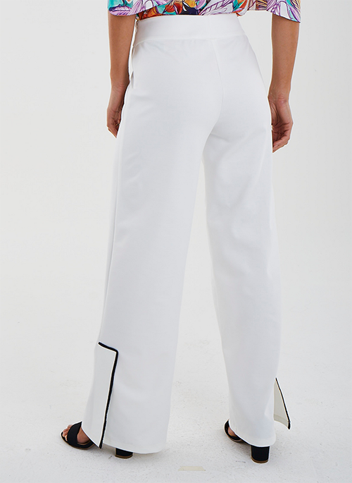 The Fina Pants are a set of crisp white neoprene pants. They have a straight leg cut with a cool detail at the lower part on the sides of each leg. They have a linear cut complementing the Fina Shirt which together form an original white suit type of set.