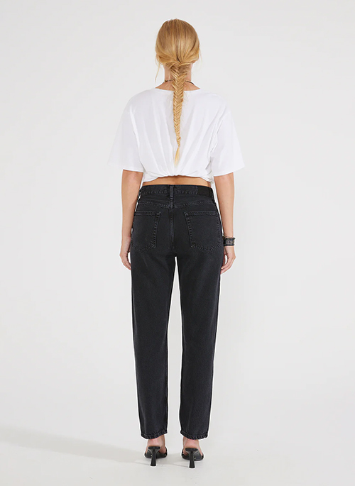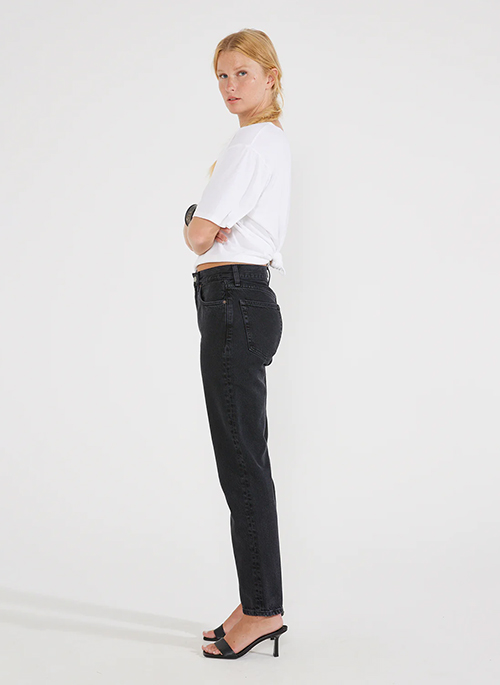 A clean cigarette jean with a high rise and vintage construction, ending just above the ankle with a finished hem.