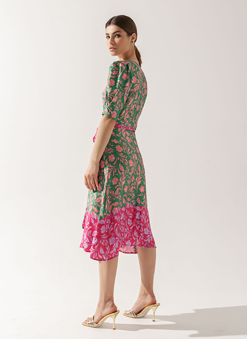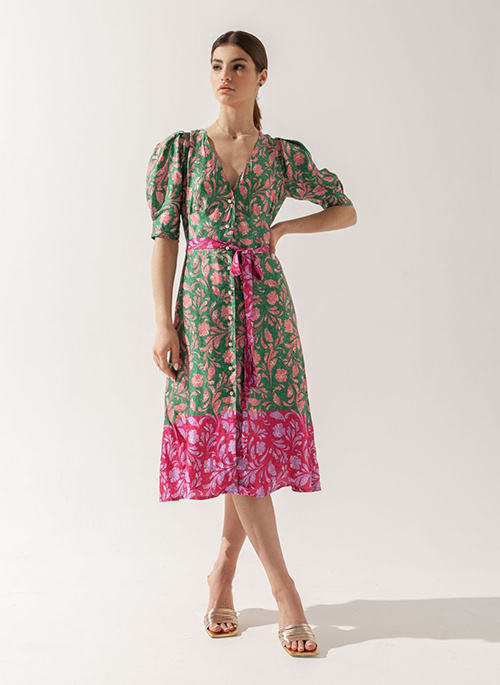 Tap into the world of nature with our Floral Print Midi Dress Fiona. Featuring half puffed sleeves, an A-shape silhouette and excellent tailoring, this dress is perfect for your next important event.