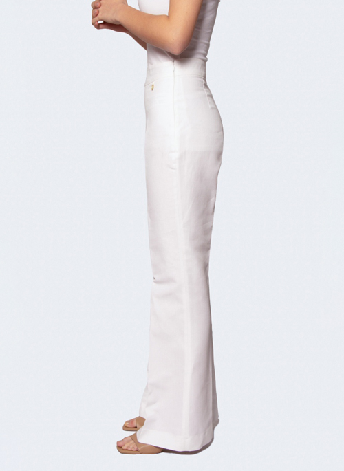 Soft flared trousers with yoke in ORGANIC COTTON-linen for a perfect fit.
