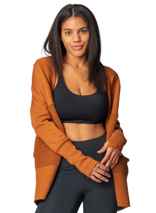The Flipside fleece cardigan is one of our most versatile styles. The super soft fleece fabric has a polar fleece interior to keep you warm after a workout or hanging out at home. Our new fabric content for this piece guarantees that it will stay looking new wash after wash!