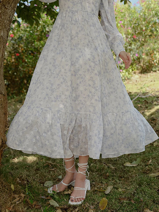 - Slim Fit & floral print & Sweetheart neck & Long sleeves with ribbon strap & Center back zipper