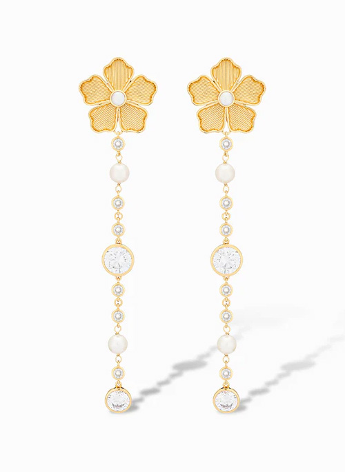 A Sparkle Within collection signature piece, these gold floral statement earrings combine feminine detail with a little bit of sparkly sass. The perfect gold earrings to dress up your favorite Little Black Dress.