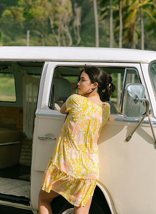 With tiered ruffles, an oversized fit, and pockets, the Florentine is comfortable and playful for every day wear. This dress has a more flowy fit - most customers stick to their usual size or size down.