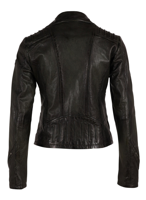 100% vegetable-tanned, lambskin leather, Flori jacket features embossed seams throughout the body of the jacket and on the shoulders.