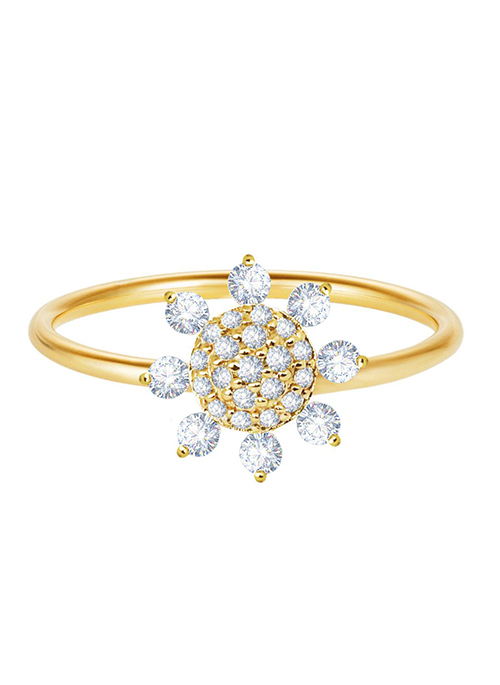 Wear the most brilliant elegance with rays of dazzling diamonds from Ring Flower. This beautiful piece has a charming and magical design perfect for any outfit. It can be purchased in gold colors yellow, white, and rose.