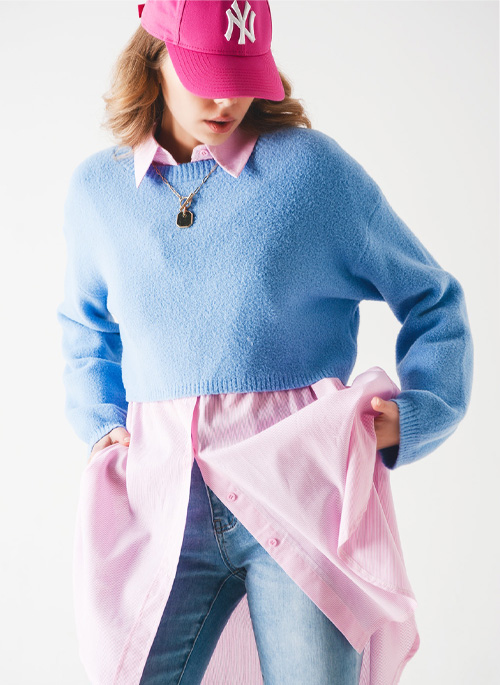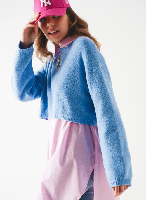NEW FLUFFY CROPPED JUMPER IN BLUE