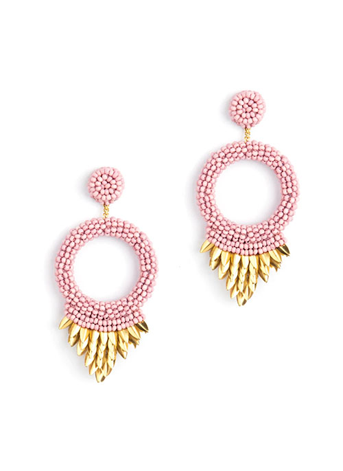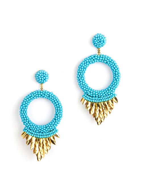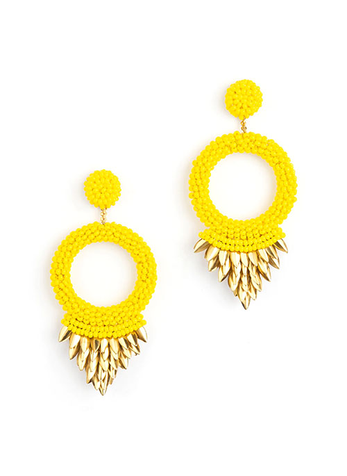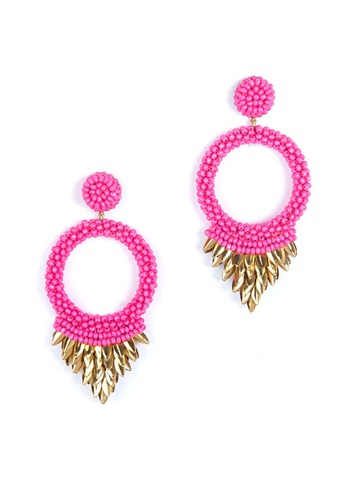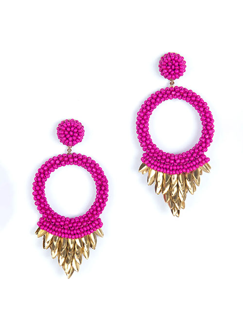 Our Franka Earrings are handmade to suit your every look. Vibrant post earrings Details: Cotton Glass beads Brass Mild steel post Vegan leather backing Nickel free Length 3" | Width 1½"