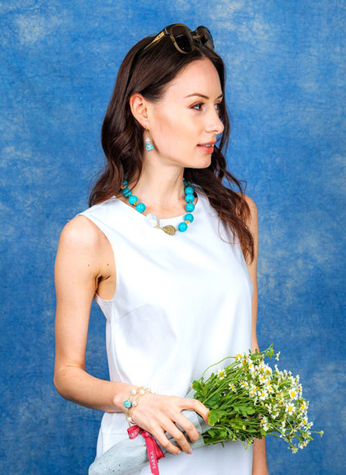 This pair of handmade earrings is made of freshwater pearls with rhinestones bordering turquoise with Japanese gold plated brass findings. It's simple but sophisticated which can be worn from day to night for any occasion. Match with the Farra turquoise necklace to complete your look.
