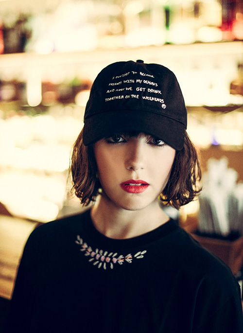 We have collaborated with poet/artist -M- on a limited-edition capsule collection. Made from cotton canvas, this six-panel baseball cap features the lyrics, “I decided to become friends with my demons and now we get drunk together on the weekends” embroidery.
