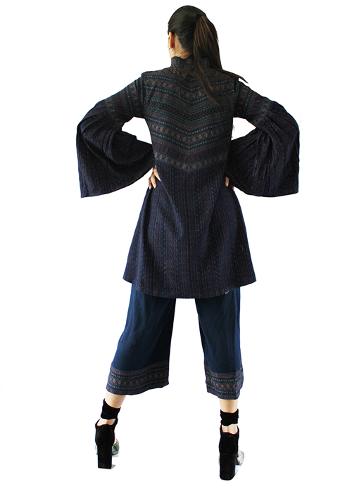 Blue viscose twill multi color block print front open tunic Blue Viscose twill