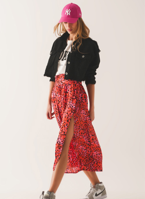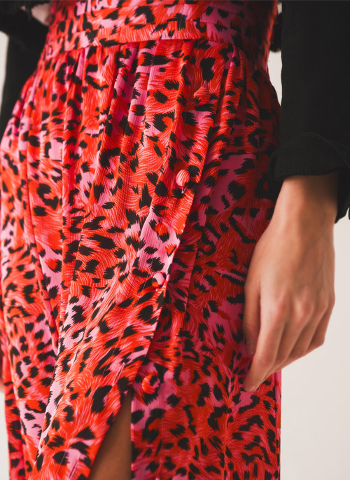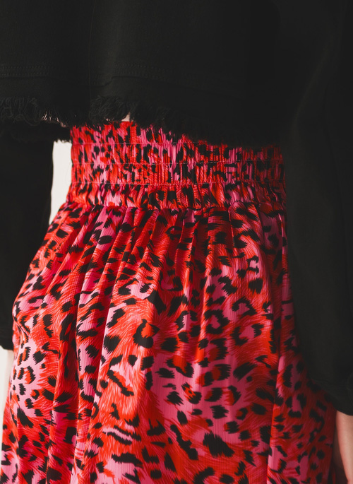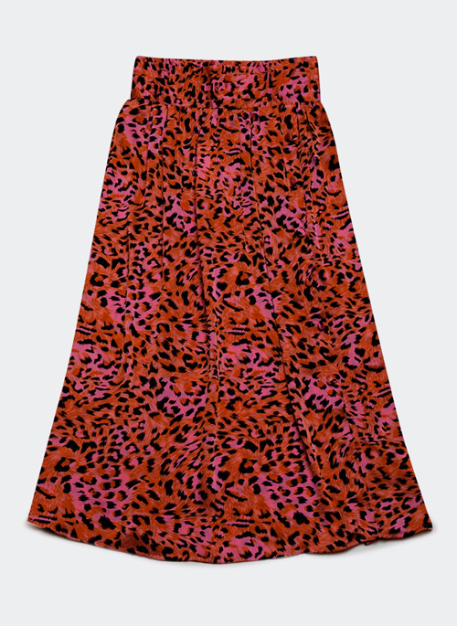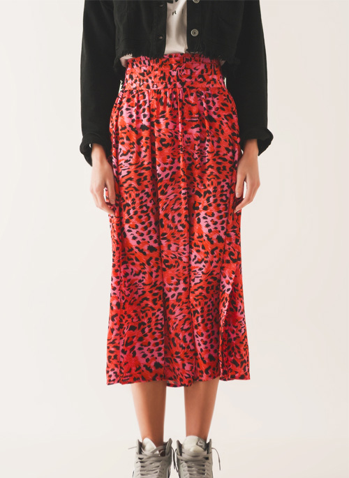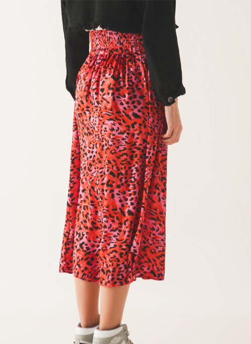 NEW MIDI SKIRT WITH ELASTICATED WAIST IN FUCHSIA ANIMAL PRINT
