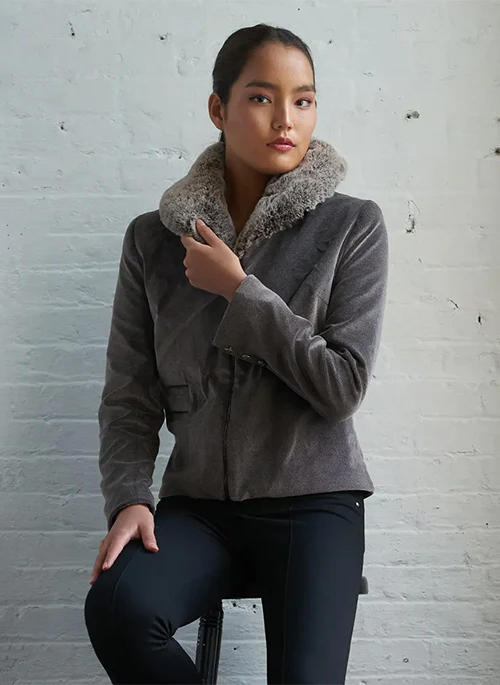 Stay warm in cooler temperatures with this faux fur jacket. Lined with bemberg fabric, its natural moisture wicking properties will keep you feeling fresh and comfortable throughout the day. The unique full back zipper and three button collar closure adds sophistication.