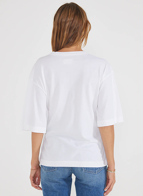 A breezy oversized T-shirt with a single gathered pleat for an elongated shape.