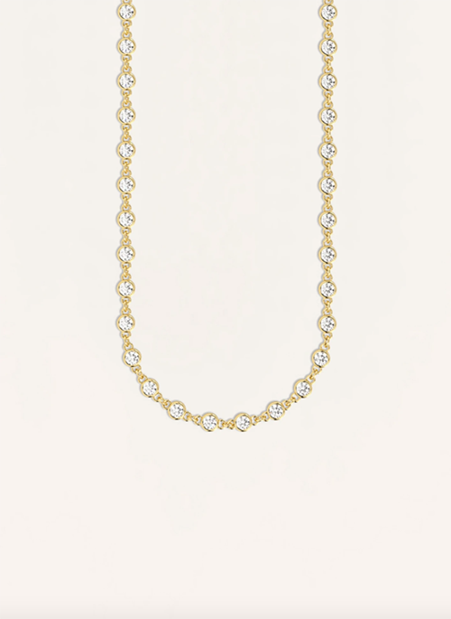 A piece of class, elegance and a touch of glamour. Wear this simply to compliment an all black outfit or you can make it the main attraction by wearing it 4 ways, doubling as a choker, wearing it as a necklace, belly chain or even a lariat. This gold-filled chain with round bezel CZs, is sure to become one of your summer wardrobe staples.