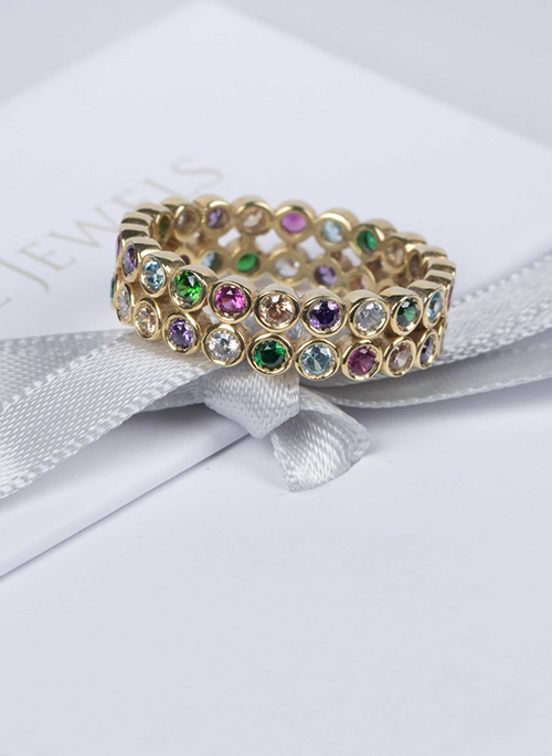 Add some vibrant and youthful elegance to your look with this beautiful ring which is totally a must-have for precious stones lovers! With its colorful design, this piece becomes a natural stunner. It can be purchased in gold colors yellow, white, and rose.