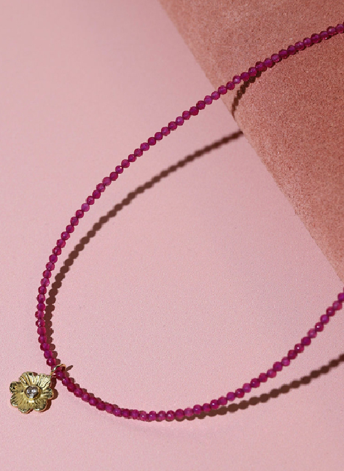 Handmade here in London, our 18ct Gold Pink Daisy Necklace textures a floral pendant with an added element of importance, a diamond in the middle. Displayed on a string of Pink Spinel for a pop of colour. Wear this everyday and layer with other chain necklaces or alone to add sparkle.