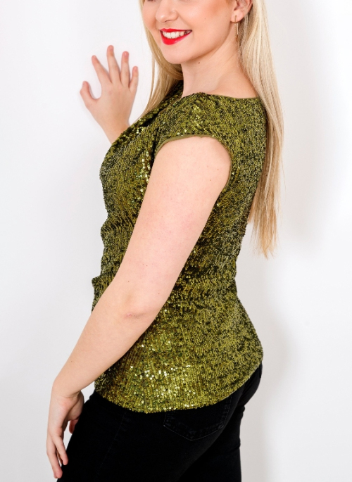 Shine bright in our luxurious sequin Gold Rush top. Cut beautifully to drape across the body for a slightly loose fit, makes this the perfect go-to top for your next occasion. Featuring off shoulder design, pleated detailing, and it is fully lined.