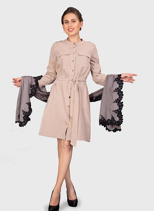 Woven from a fine silk and wool blend, this mousse scarf features a contrasting black bold scalloped edging lace border. This chic and contemporary accessory keeps you stylishly warm.