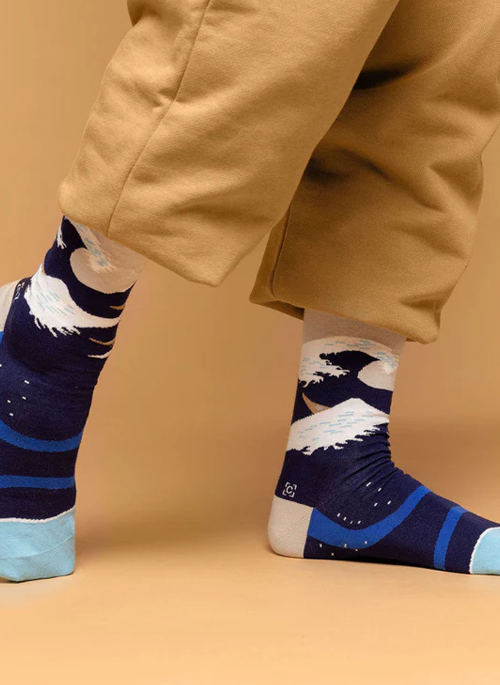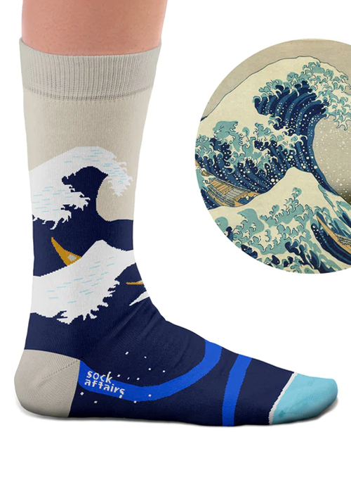 The image depicts a rogue wave endangering three boats off the coast of Kanagawa with Mount Fuji rising in the background. The indigo blue (Prussian blue) so recognizable in Hokusai’s landscapes, was used as the foundation in our piece honoring the most recognizable work of Japanese art in the world.Details: