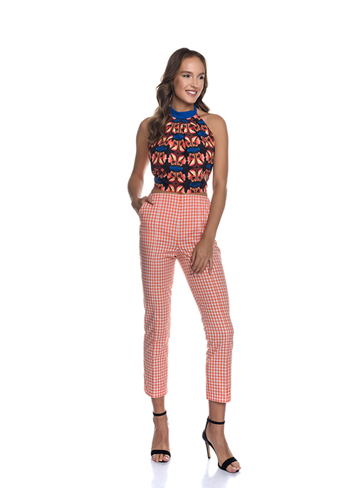 This is, definitely, a wearable piece with daring and unexpected details - a halter neck top that turns to reveal an open back that is held in place by a delicate tie in the back. It is made from lightweight crepe fabric with the "M" motif hugging your figure that ties, also with a button fastening around your neck. It is fully lined with satin black lining.