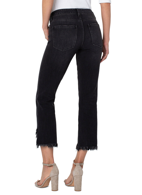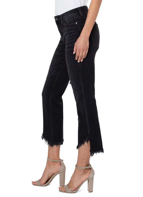 Fashion doesn't have to be uncomfortable... Our super asymmetrical frayed crop flare has amazing stretch and recovery. The perfect wash to dress up or down.