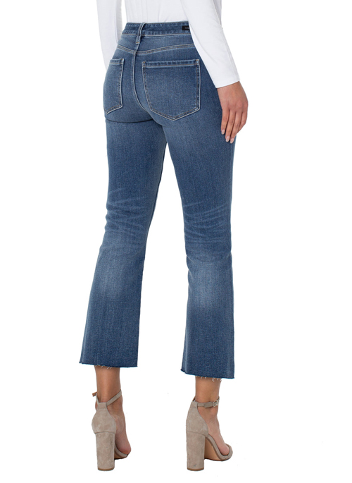 Cut in an of-the-moment silhouette, features a destructed let down hem and is perfect for all the festivities! Feel great and look amazing in our Hannah Crop Flare. Easily style this jean up or down for any occasion.