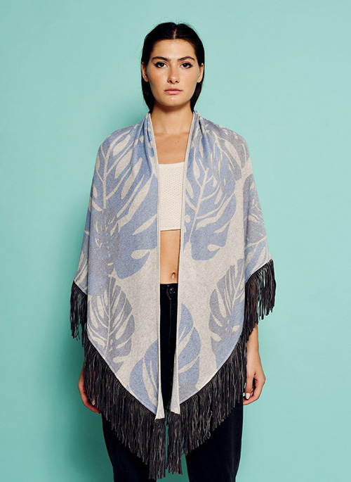 Fine workmanship, embroidery on the side and fridge along the edges, completes this stunning one-of-a-kind piece. The Hansen wrap features a cashmere-blend knitted fabric which is place-printed and embroidered with the words “Beautiful like a rainbow”.