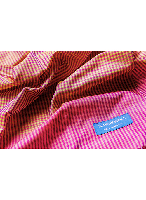 Top-of-the-range 100% silk Krama, entirely hand-woven in Cambodia. Two days of weaving are necessary for the realization of each Silk Krama.