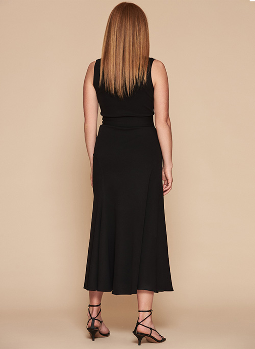 Asymmetrical lines and a slit, this comfy dress is created from GOTS certified Organic cotton rib, detailing a hand cut and organically shaped wood buckle.
