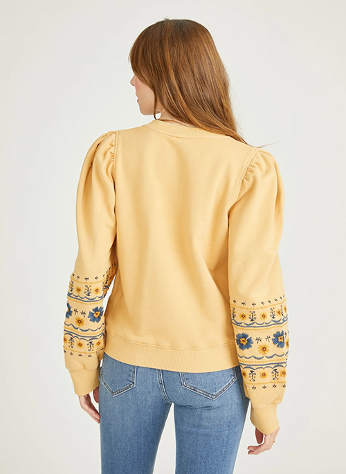 Combine cute with comfortable and you’ll get the Henley Sweatshirt. Its super soft fabric, puff-shoulders and perfect dainty embroidery is a stylish dream come true. Complete your look with the Cropped Sweatpants.Details:
