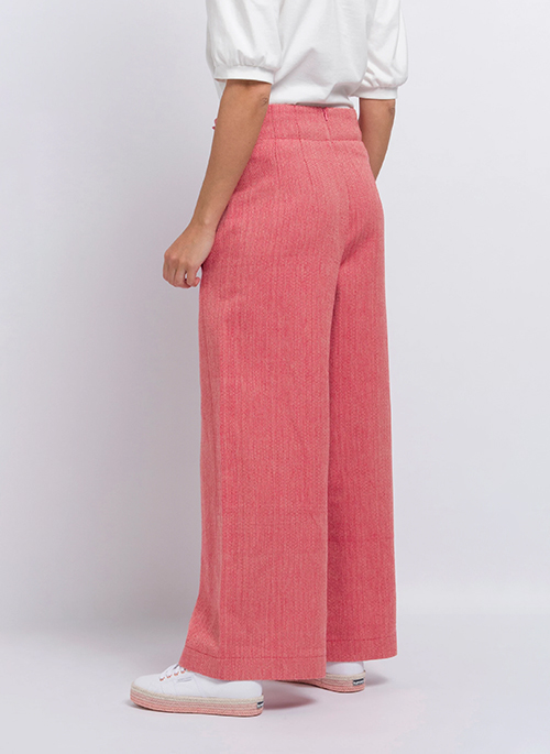 In line with VAAI's artisanal sensibilities, these herringbone trousers are crafted using fabrics that are handwoven by a small Keralan community in India resulting in a beautiful rich heritage fabric. They are with a high-waistband that gently tapers and falls to wide legs. Front ruffles add a decorative detail as well as pockets for practicalities. Comfortable to wear with a turtle neck and sneakers for a casual look or add glamour by pairing with a silk top and heals. Either way an elegant day to night edit.