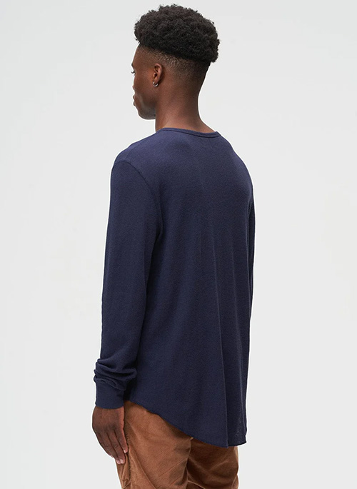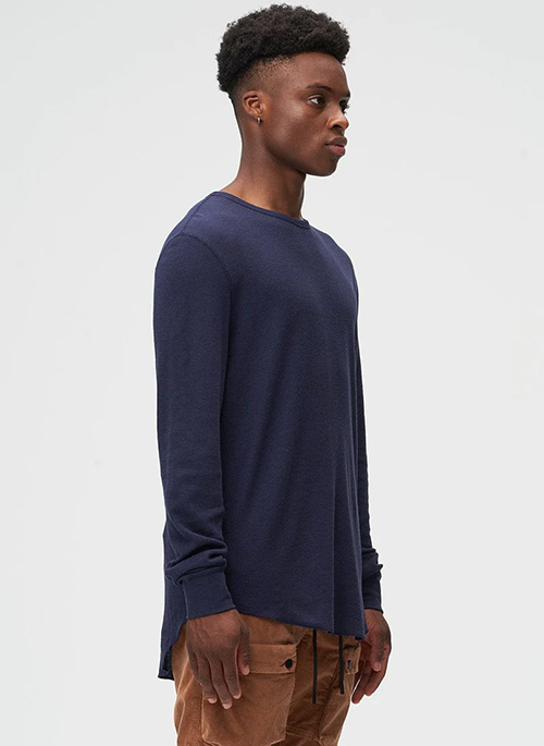 Thermal Hi-lo long sleeve features a curved hi-lo hem. Waffle thermal fabric with cover stitch seams and thumb holes for extra warmth and style. Ideal piece for layering all season long!