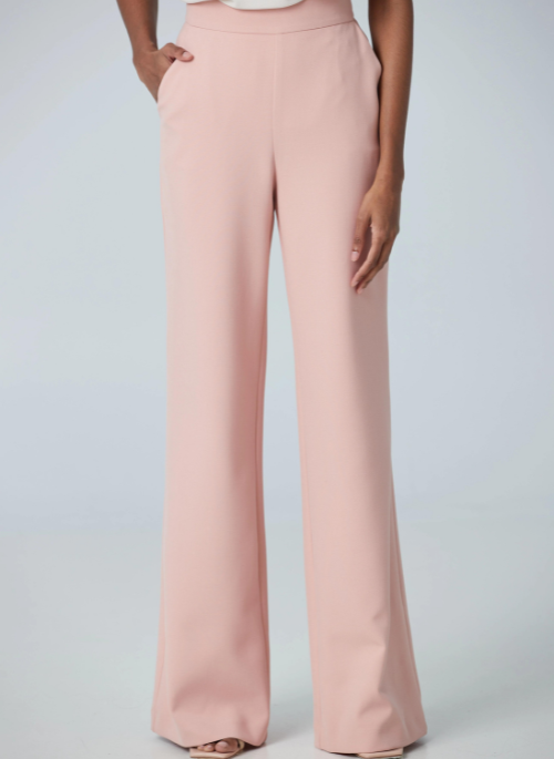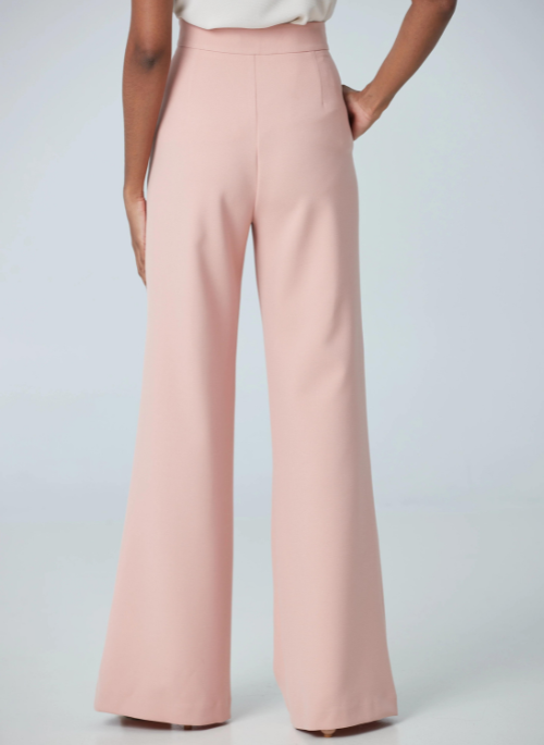This fabric was imported from Italy. Our design team fell in love at first sight with the texture and appearance of the fabric. High-Rise wide leg pant that goes with everything.