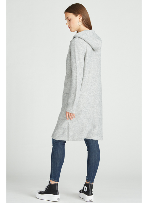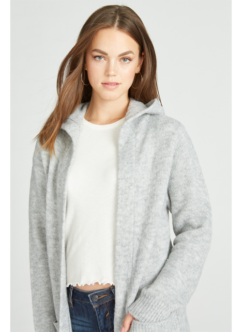 The hooded sweater cardigan is a staple in any wardrobe with its soft mossy yarn and long length detail.