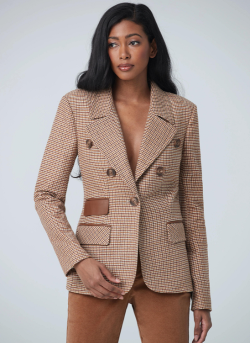 This equestrian blazer with leather detailing behind the elbows this item is a must have for you this fall. Create a dressier look with work pants or a more casual look with jeans this jacket is versatile and easily adaptable to any look.