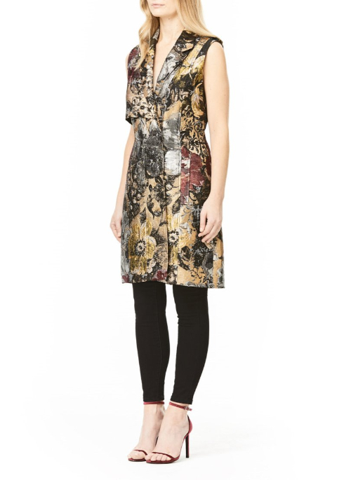 Destined to be your new favorite accessory, our Hudson Trench Vest gives your closest versatility, made of unique brocades. Wear it with leggings and a turtle neck or as a dress for a sleek sophisticated look.