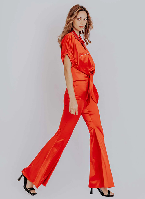 These trendy flare pants can be dressed up or down. They feature a high waist, a form-fitting fit, and a red flared leg silhouette. The viscose is extremely soft and stretchy. Style with the matching cropped tank for an effortless look. Details: Pants Only. Made in Turkey. Rayon satin blend.