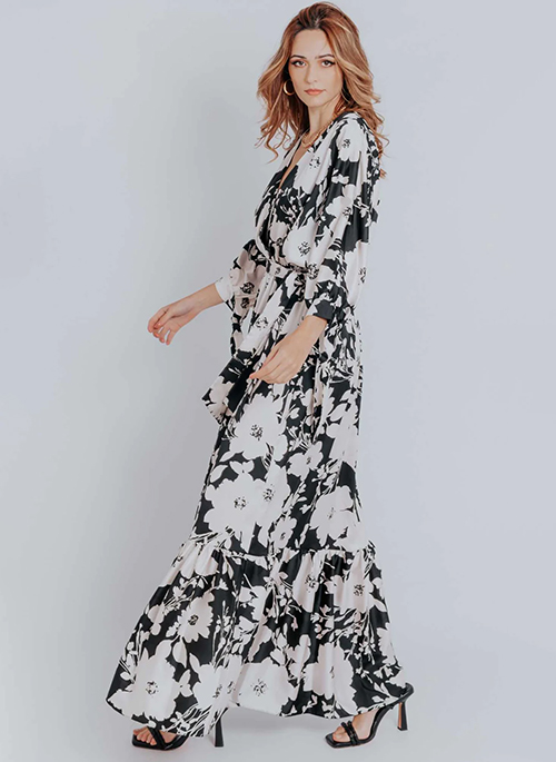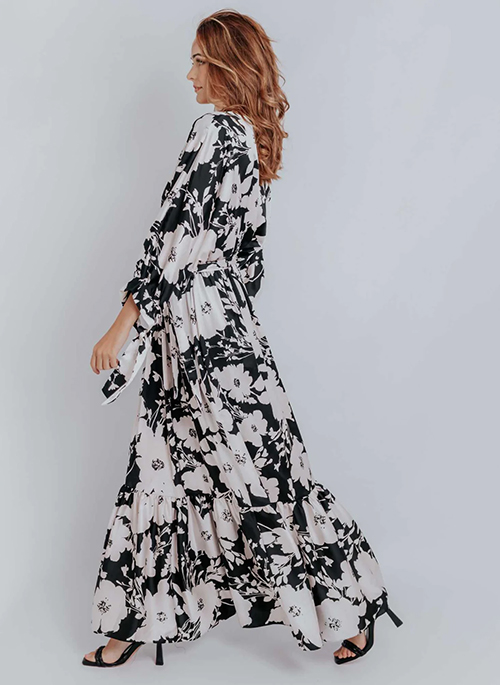 Enchant in the Isabelle Floral Print Ruffled Hem Belted Dress to make your beach, holiday, and event truly elegant and sophisticated. The Floral Print design dazzles with a V-Neck, Long Sleeves, and Tie Front. Perfect pair your look with micro bags and stiletto heels.