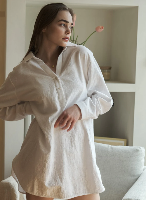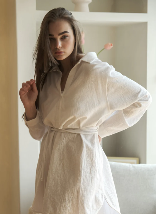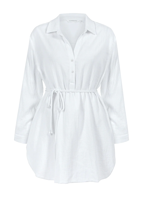 The Isle Shirt Dress White is feminine, timeless sensibility of elegance. Featuring an elastic back waist, longer back hemline and an adjustable handmade twisted belt, the Isle Shirt Dress is fitting for special occasions and everyday wear alike.